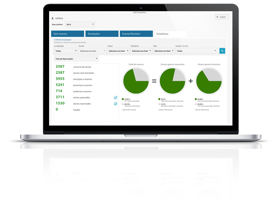 Defina, construa, edite e guarde exames, provas, testes ou questionários personalizados e associe-os aos diferentes utilizadores.